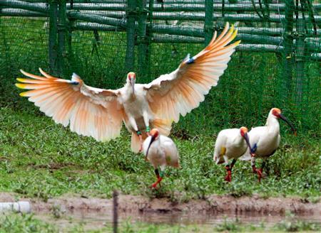 自立イヤ?トキ放鳥、外に出たのは2羽だけ