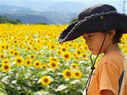 北杜市明野地区は日照時間が日本で一番長いこともあり、“太陽の花”ヒマワリを楽しんでもらう「サンフラワーフェス」を18年前から毎年開催している。今年は市民ボランティアらが18区画に分かれた計約6万5000平方メートルの広大な会場に、5月ごろから昨年の2倍となる約60万本分の種をまいた。 早いものは先月後半ごろから開花を始めているが、各区画ごろに種をまく時期をずらしているため、今月いっぱいは一面に咲いた大輪のヒマワリを楽しむことができるという。 会場は、中村獅童さんと竹内結子さんが出演した映画「いま、会いにゆきます」(平成16年)のロケ地としても知られており、2人が再会する感動的なシーンで使われた。家族連れやカップルらが多数訪れ、記念撮影をするなど、思い思いのスタイルで夏を楽しんでいる。 |