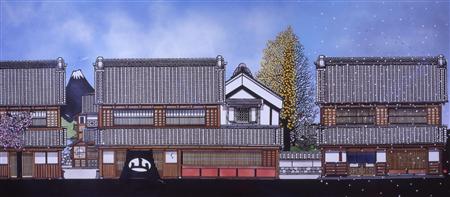 画集はA4変形判オールカラーで63点を収録。ベスト作品集の第一巻という位置づけで、「日本の四季」とサブタイトルがつく。折り畳みの見開きページなど趣向を凝らした内容になっている。 作品は、特定の場所のようでありながら、じつはどこにも存在しないことが多い。イメージの組み合わせで“どこか懐かしい風景”を生み出す。「特定の場所を描くこともありますが、それでもそのまま絵にはしませんね」と久保さん。 「ジャポニスム」というタイトルには、願いが込められている。切り絵を日本美術の一ジャンルとして確立すること、そして世界的な認知度を高めること。「面白いと言ってもらえる自信はあります」 作品展では、ふすまぐらいの大きさという大作も含め、新作35点を展示する。入場無料。 |